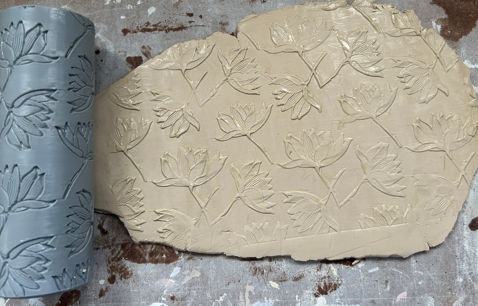 Flowers large texture roller is 7" long and 2 1/4" round.